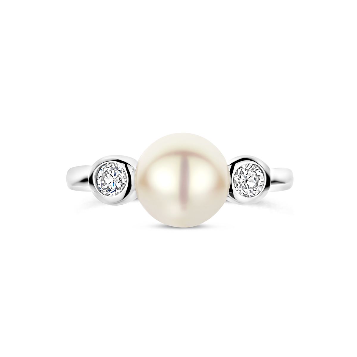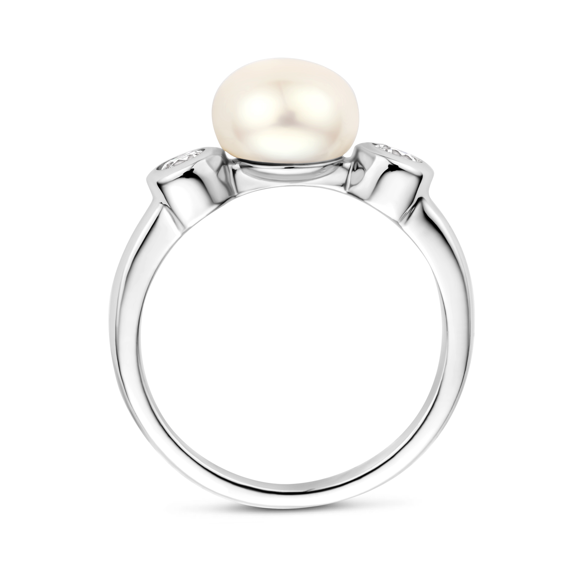 Gerhodineerd zilveren ring met zirkonia en parel van 8.5mm.