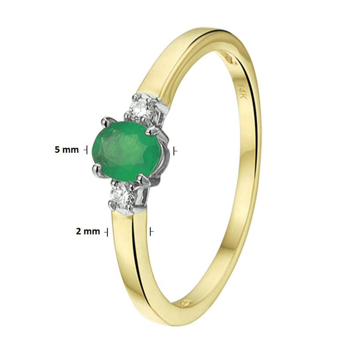 ring smaragd en diamant 0.05ct h si 14K bicolor goud geel/wit