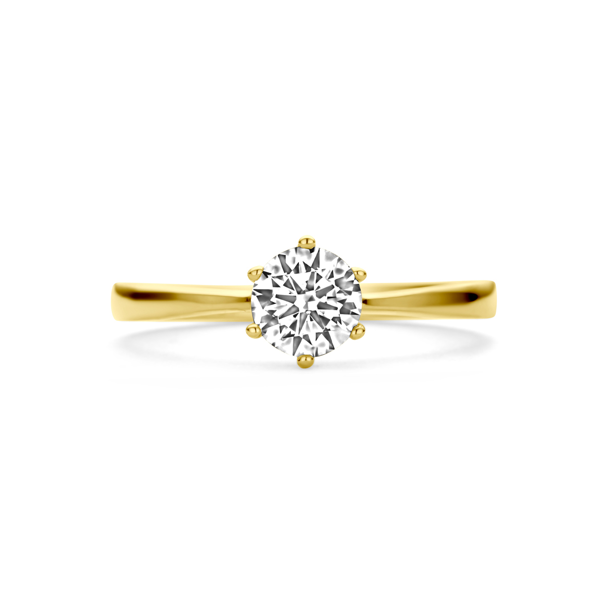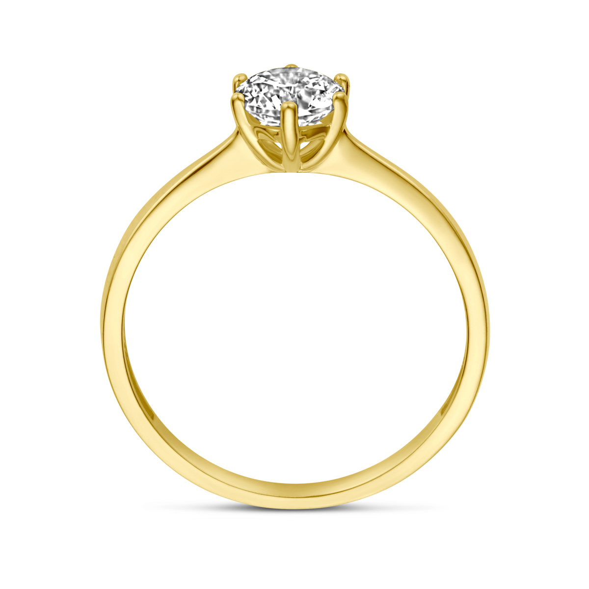 14k Geelgouden ring uitgevoerd met zirkonia. De ring heeft een breedte van 6.5mm.