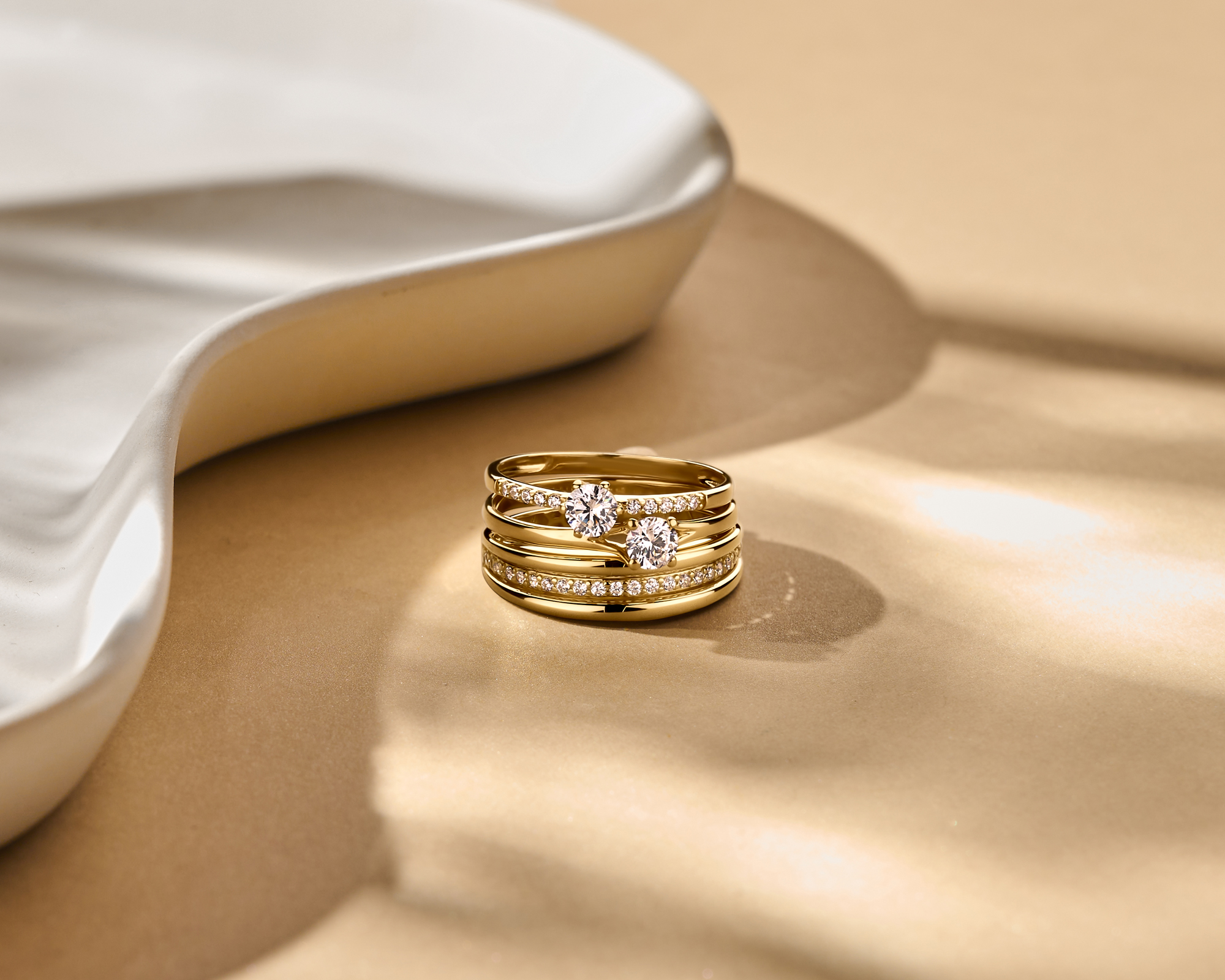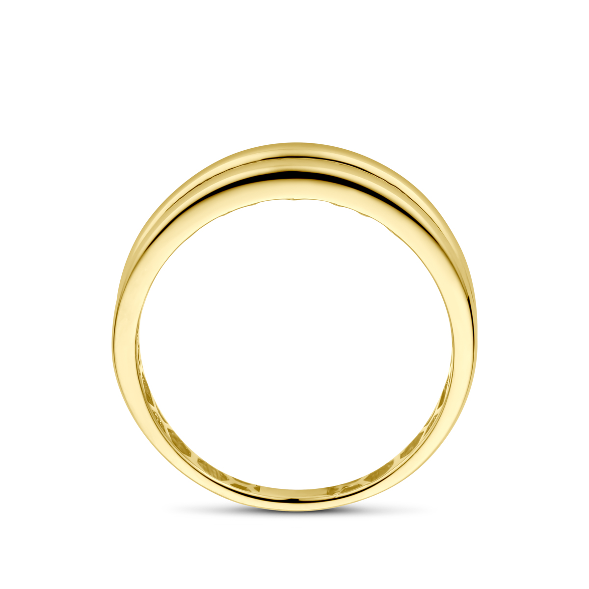 14k Geelgouden ring uitgevoerd met zirkonia. De ring heeft een breedte van 5,5mm.