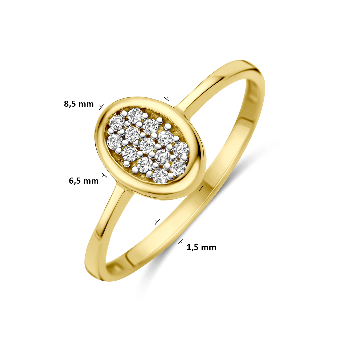 14k Geelgouden ring met zirkonia. De ring heeft een afmeting van 8.5×6.5mm.