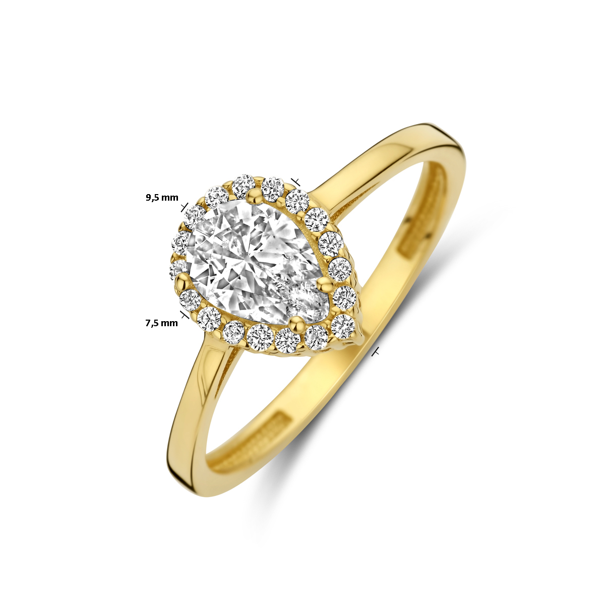 14k Geelgouden ring uitgevoerd met zirkonia. De ring heeft een breedte van 9.5mm.
