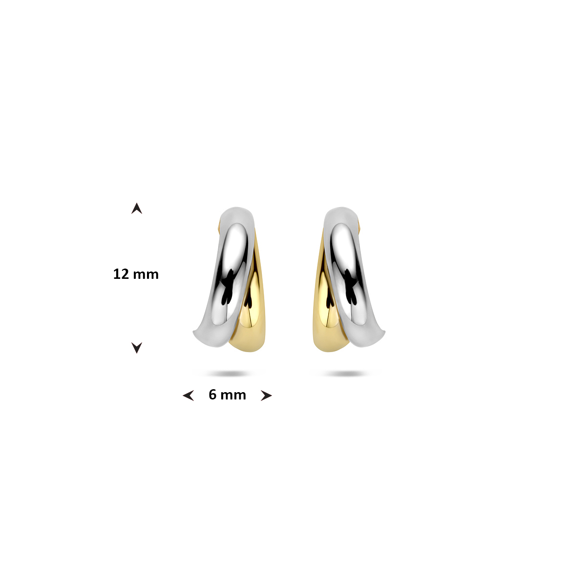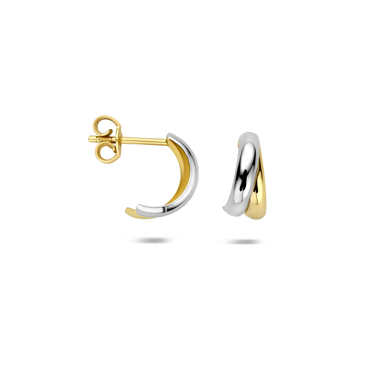 14k Bicolor geel en witgouden stekeroorringen met een afmeting van 12x6mm.