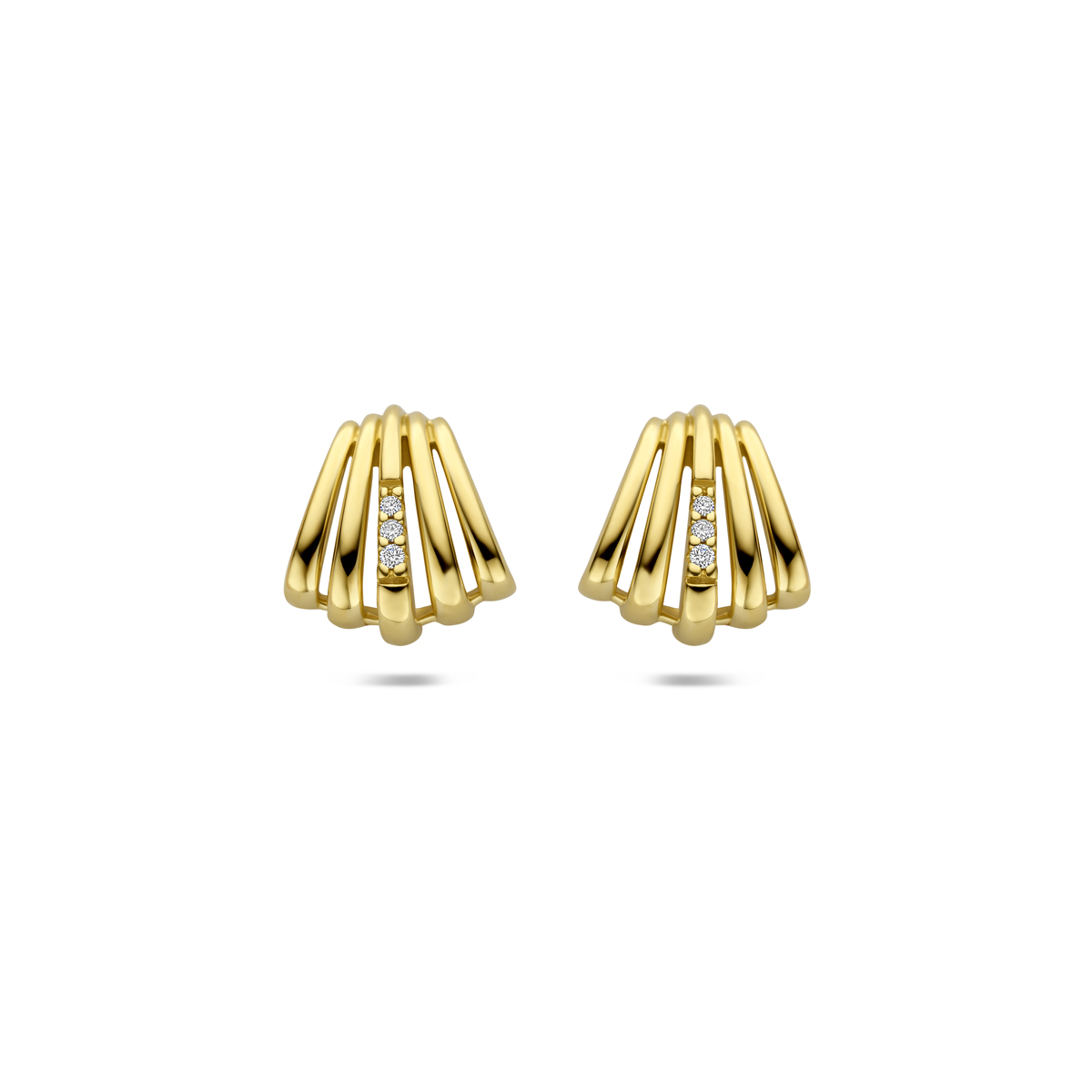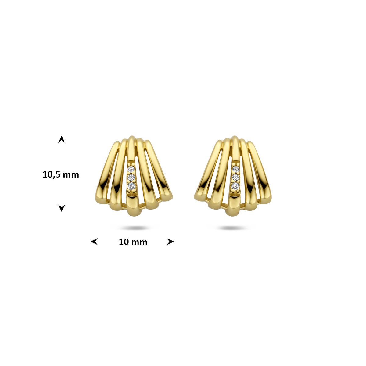 14k Geelgouden stekeroorringen uitgevoerd met diamant. De stekeroorringen hebben een afmeting van 10,5x10mm. Het totale diamantgewicht is 0.03ct.