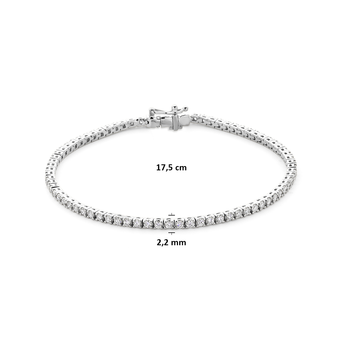 Gerhodineerd 925 zilveren tennisarmband uitgevoerd met lab grown diamanten. De armband heeft een breedte van 2.2mm en een draaglengte van 17.5cm. Het totale diamantgewicht is 2.00ct. Lab grown diamanten zijn diamanten die ontstaan in een laboratorium. Onder extreem hoge druk en temperatuur wordt het natuurlijk ontstaansproces nagebootst met als eindresultaat een diamant met dezelfde chemische eigenschappen maar met een andere oorsprong.