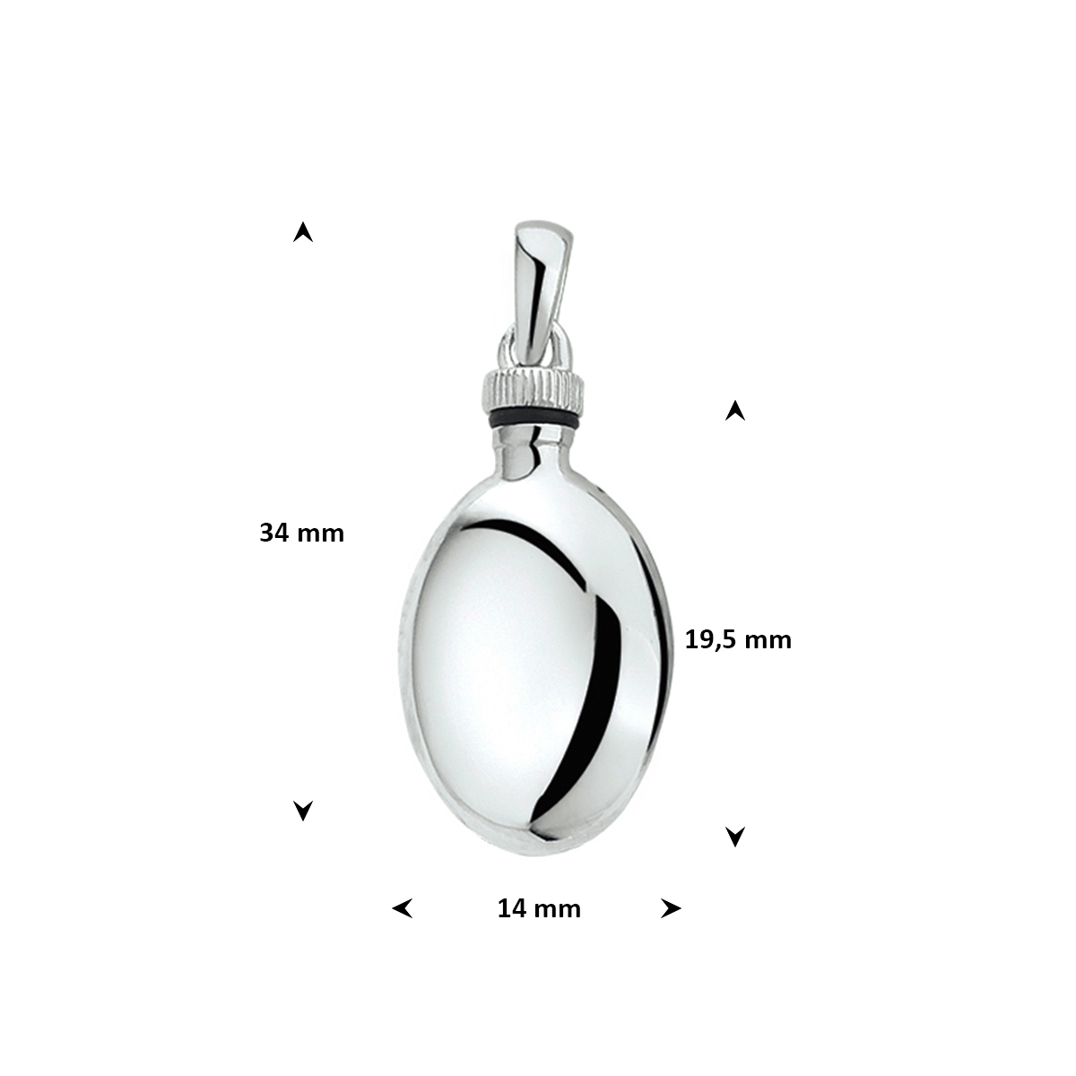 Gerhodineerd 925 zilveren urnhanger met een hoogte van 19.5mm excl. oogje en een breedte van 14mm.