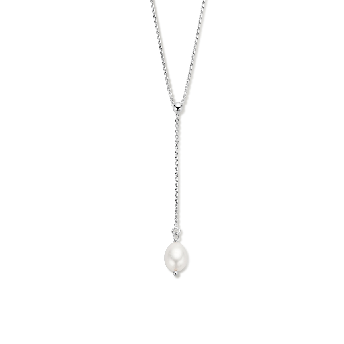 y-collier parel 45 + 5 cm zilver gerhodineerd