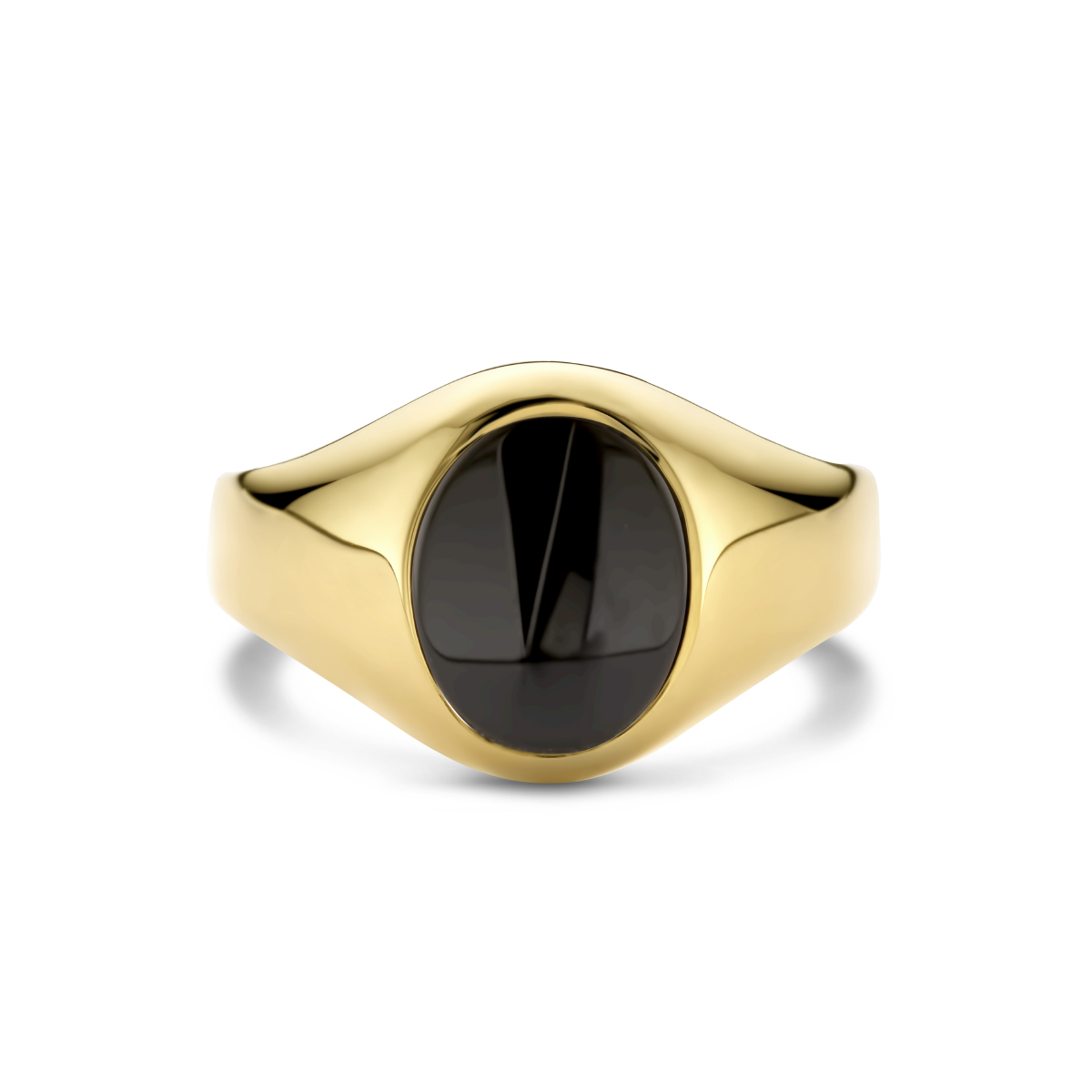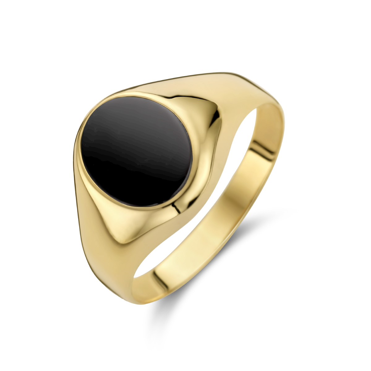 14k Geelgouden ring uitgevoerd met een schitterende onyx steen.