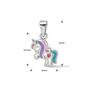 hanger emaille eenhoorn 10 mm zilver gerhodineerd