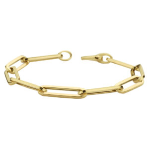 armband paperclip vierkante buis 6,0 mm 19 cm met groot springslot 14K geelgoud